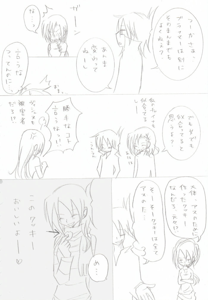 性別変わっても何らこれといった変わり映えもないって空しいね。イジりがいなし。 ブラフマー「ほっとけ!!!!(怒)」 マーくんキレると敬語吹っ飛ぶ^^ さてさて♂アスお披露目。どうなることやら^^^^^^ 2009/03/08 mutsuki shigure