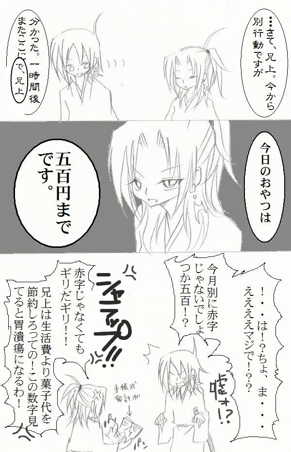虎狼兄妹の旅の経済面は全部九印が請け負ってます。 生計が成り立ってんのは彼女の苦労あって故^^ ちなみに咲牙、甘党。甘味や菓子に自費使っちゃうので九印も頭を悩ませてる。 2009/05/31 mutsuki shigure