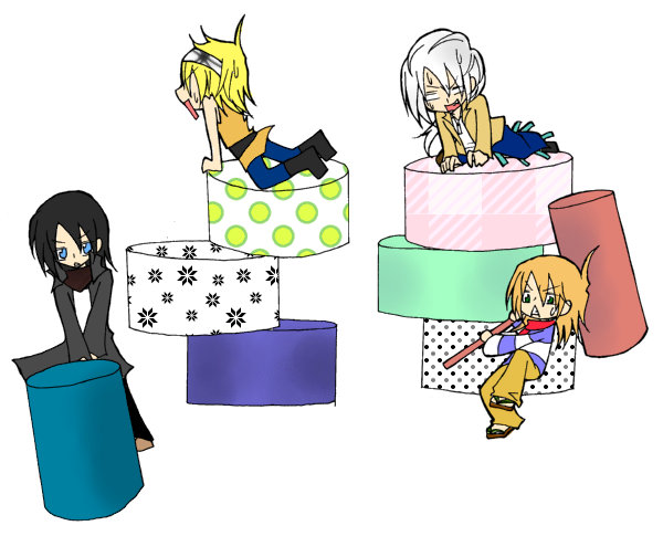 「おいアス!ちゃんと狙えよ!!お前命中率悪いぞ!!」 「し、心配しなさんなバジル・・うぉおっとっとぉ!;」 「レクヤ?レクヤ!?;俺落ちるよ!そろそろ落ちちゃうよ俺ホント!!」 「・・俺がお前を落とす訳ないだろう。(ましてや阿修羅に負けるなど・・)」 2010/05/09 mutsuki shigure